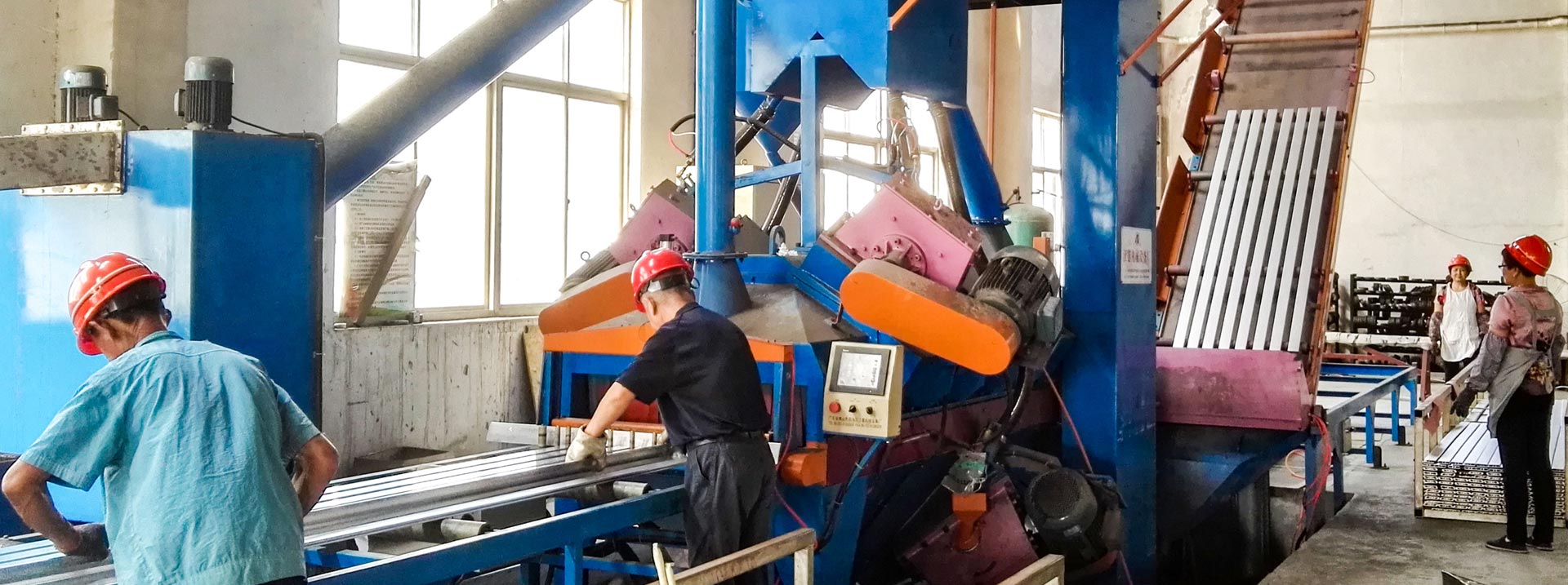 專(zhuān)業(yè)生產(chǎn)多種鋁合金型材及制品的企業(yè),已有二十多年的經(jīng)驗(yàn)和歷史?,F(xiàn)有鋁型材擠壓設(shè)備四套,分別為1800T、1000T、630T、600T擠壓生產(chǎn)配套設(shè)備有10m長(zhǎng)不銹拋丸機(jī)。6m鋁型材表面拋光機(jī),4.5m普拉迪鋁材加工中心,多臺(tái)高精度自動(dòng)切割機(jī),雙頭轉(zhuǎn)向切割機(jī),備有12m長(zhǎng)時(shí)效爐。